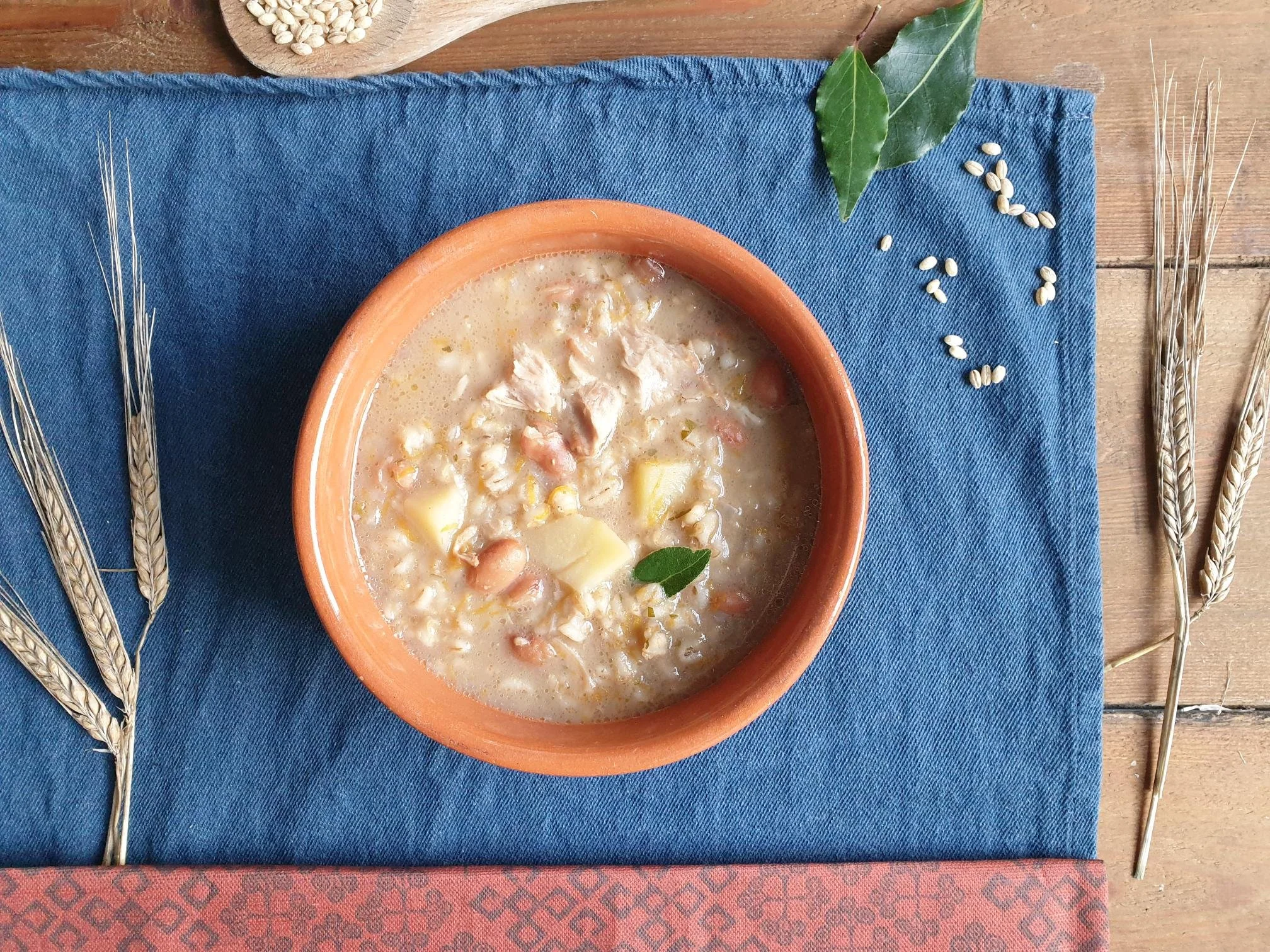 Barley soup is traditionally made during colder autumn and winter months using dry borlotti beans, potatoes and barley that were harvested by the end of summer and autumn and appropriately stored to be used later in the year when the cold weather did not allow you to grow a vast array of vegetables, unlike during the spring, when it was warmer, and you could grow them in abundance to make even a lighter Minetrone Primavera.