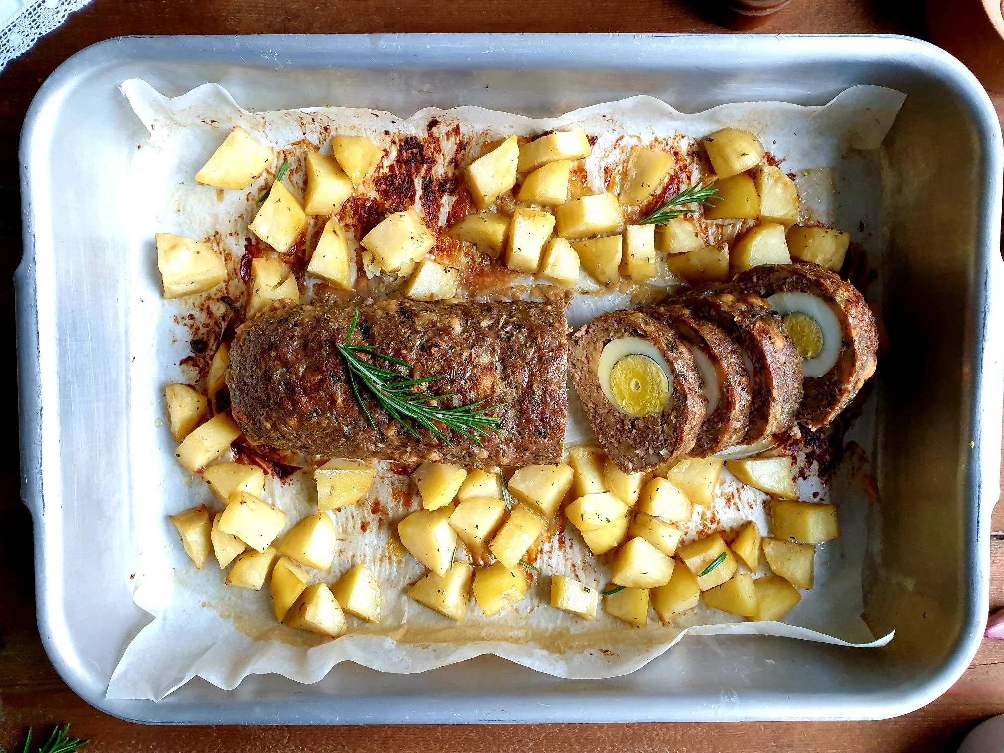 Meatloaf with Hard Boiled Eggs and Oven Baked Potatoes Istrian Recipe