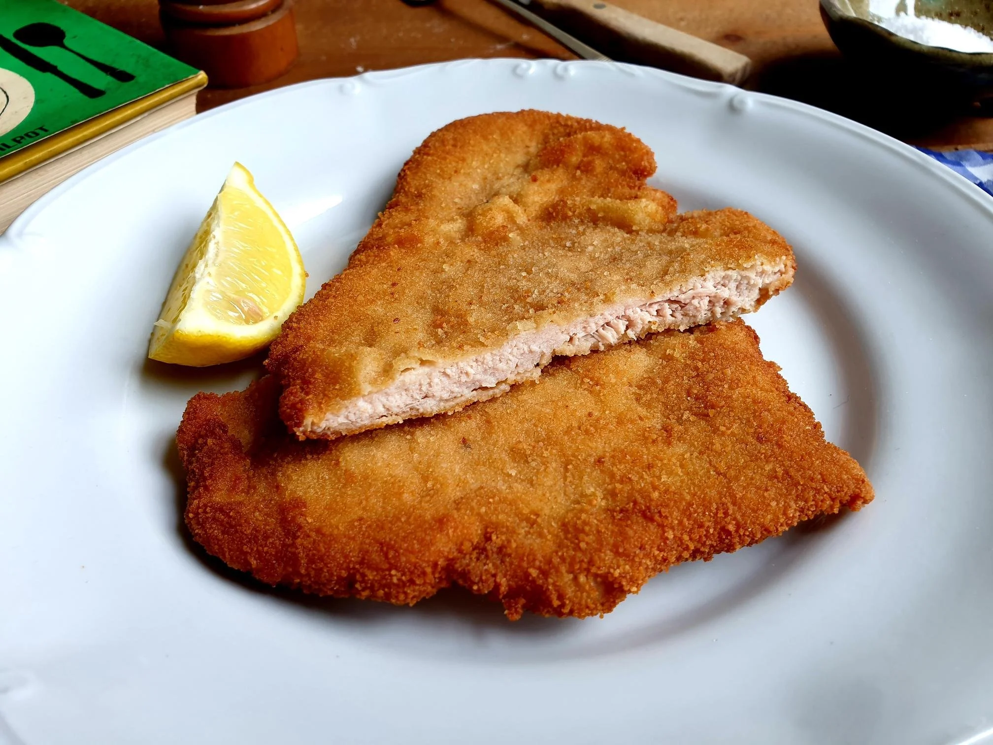 Breaded meat escalopes are ideally eaten hot as soon as they are fried with some mashed potatoes, a seasonal salad, or Austrian style potato salad. They can also be served with boiled potatoes and some melted butter, and freshly chopped parsley, and a wedge of a lemon (optionally squeezed on escalope once fried). They are also incredibly delicious at the room temperature and offered as a part of a buffet, and they are also great used as as a filler in a sandwich (add a bit of fresh rocket salad and spread a slice of bread with a bit of mayonnaise, and you have a sandwich that is to die for).