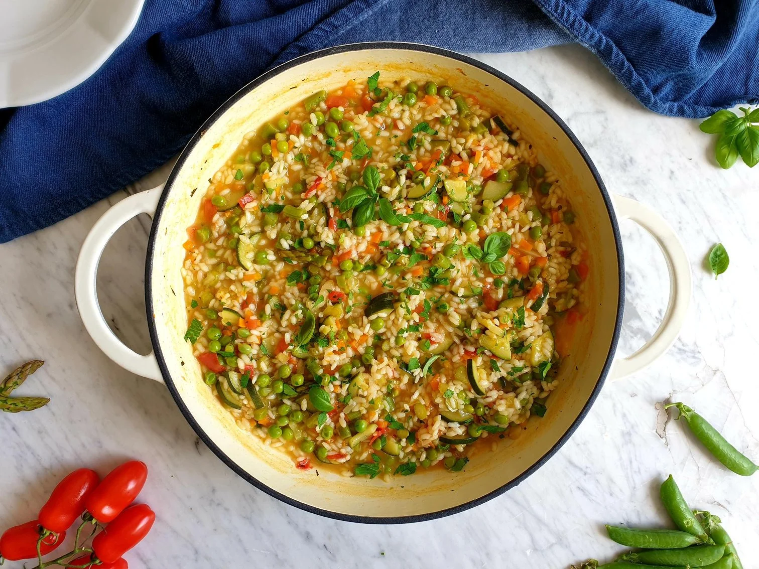 This classic spring vegetable risotto, using any seasonal spring vegetables, must be one of the most loved and popular dishes for all generations. This risotto is rustic, simple, and filling, and represents a genuine plate of food that puts a smile on anyone's face with the array of colours on the plate offered by the vegetables.