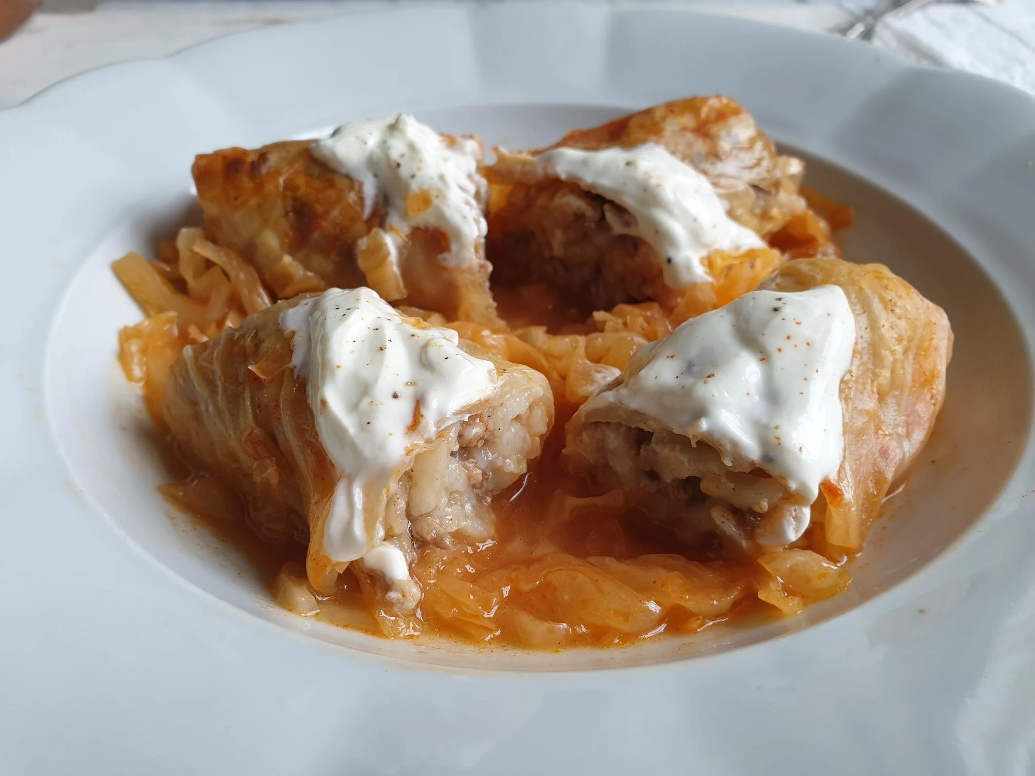 Sarme - Pickled cabbage leaves stuffed with minced meat and rice in a light tomato sauce