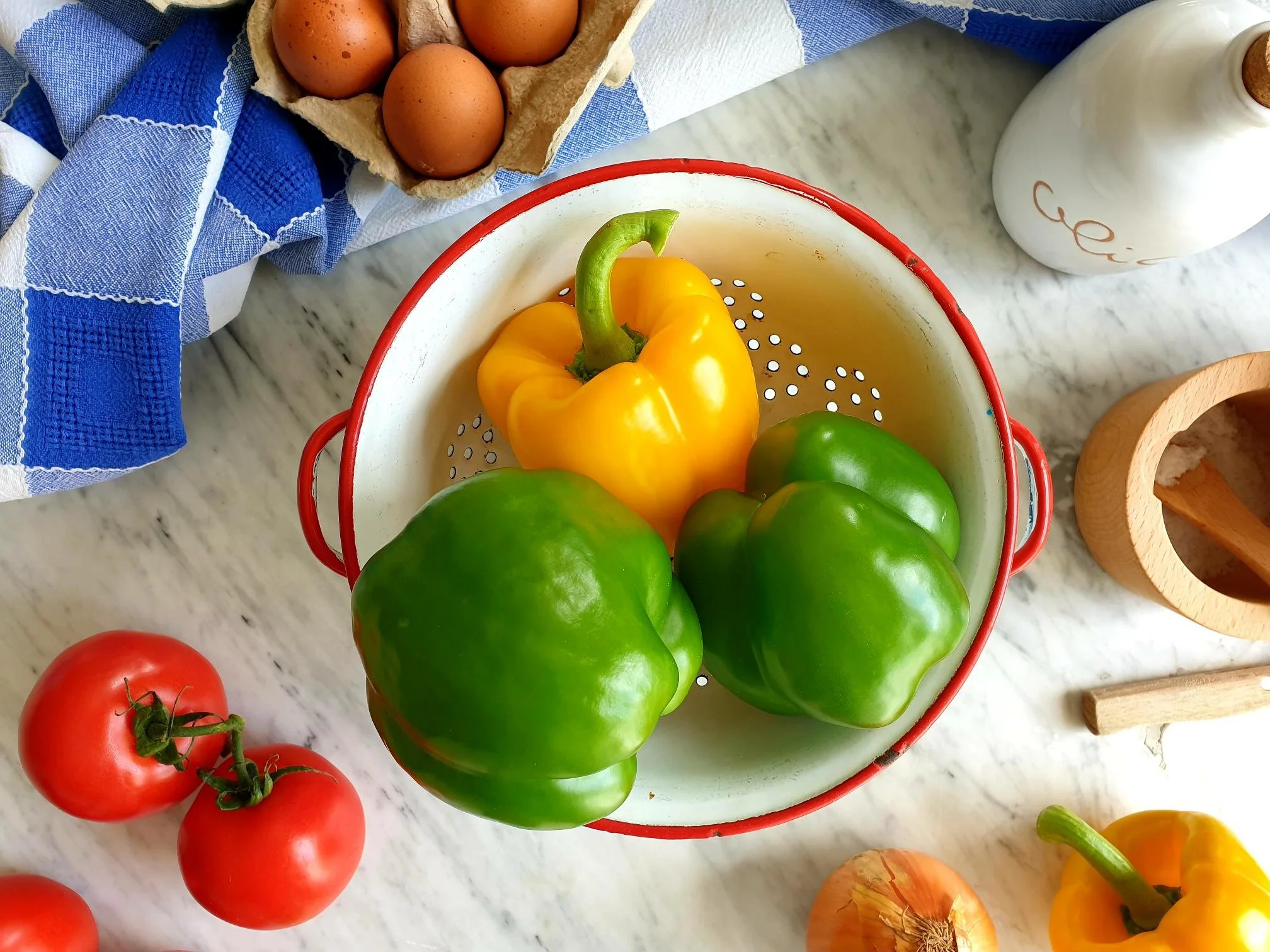 You can prepare pepper, onion and tomato stew well in advance, keep it in a fridge in an airtight container for about 3 days, and pour the whisked eggs on a pepper base just before you want to complete the dish and ready to serve it.